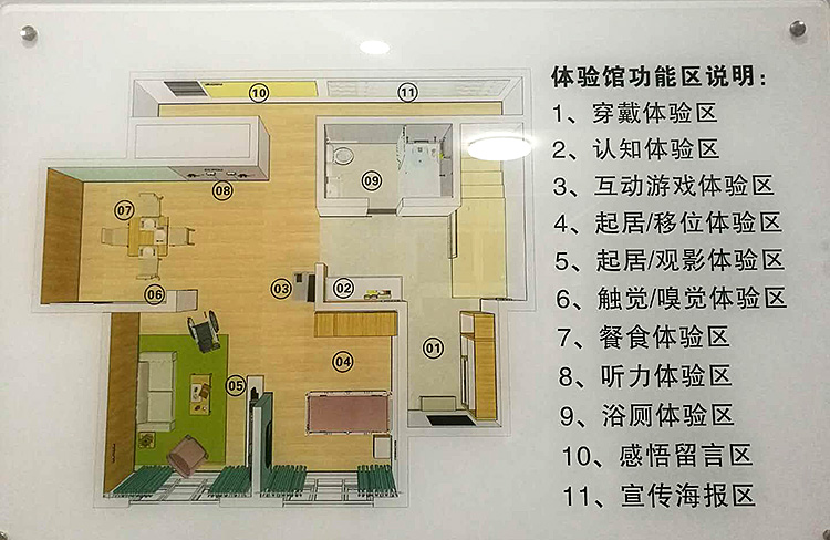 ![]() 长春市绿园区政府人员与董事长白净女士一同参观考察了体验馆的体验区,下图中为起居/移位体验区的室内环境。